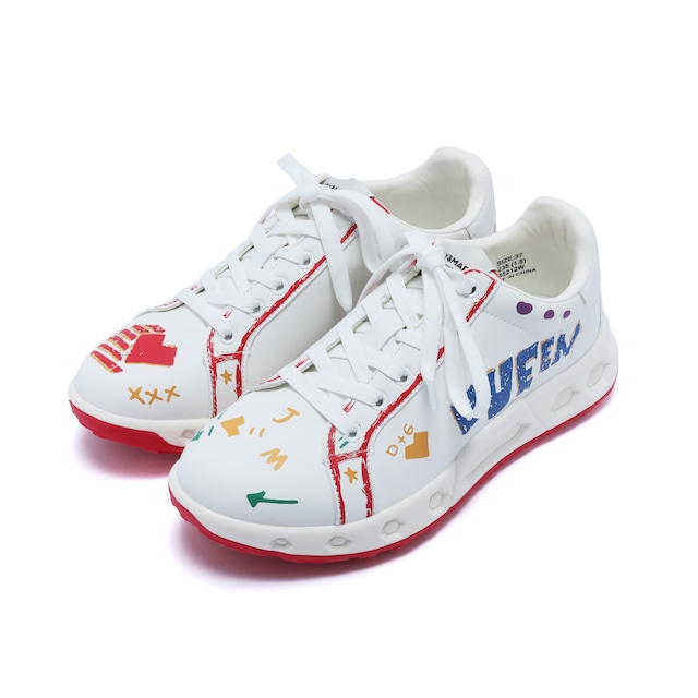 **83698W グリッターハートデザインスニーカー WHITE** 毎日のコーディネートに個性を与える83698Wグリッターハートデザインスニーカーは、遊び心あふれるデザインが魅力です。厚底なのに軽やかな履き心地で、快適に過ごせる一足。可愛らしいグリッターハートとかかとのパール装飾、さらにJoy&Marioらしい落書き調のデザインが、スタイルに華を添えます。とげスタッズがアクセントとなり、カジュアルながらも洗練された印象を演出します。 Joy&Marioらしい落書き調のデザイン性と履きやすさを両立させた、あなたのワードローブに欠かせないアイテムです! ■カラーとサイズ展開 ・色 WHITE サイズは35(22.5cm)~40(25.0cm)の5サイズ展開です。ぜひお好みのサイズをお選びください。 ヒールの高さ 4.0cm 靴幅 2E(普通) プラットフォームの高さ(cm) 3.5cm ヒールの形 フラットヒール つま先の形状 ラウンド クロージング レースアップ 裏素材 合成皮革 中敷素材 合成皮革 ソール素材 合成 ■お手入れと取り扱いの注意 ・汚れた際は、乾いた布で優しく拭いてください。 ・直射日光の当たる場所や高温の場所での保管は避けてください。 ■発送および注文に関する情報 ・ご注文後、3営業日以内に発送いたします。在庫切れの場合は別途ご連絡いたします。 ・サイズの交換はお受けいたしますが、返品はご遠慮ください。 ■その他の情報 ・ご使用のモニターや環境によって、実際の色味が異なる場合がございます。 ・サイズ感について不安な点がございましたら、お気軽にご相談ください。 ぜひ、この機会に83698Wグリッターハートデザインスニーカーをあなたの日常に取り入れて、軽やかさとおしゃれを楽しんでみてください!お問い合せは、ショップのお問い合わせページよりご連絡お待ちしております。