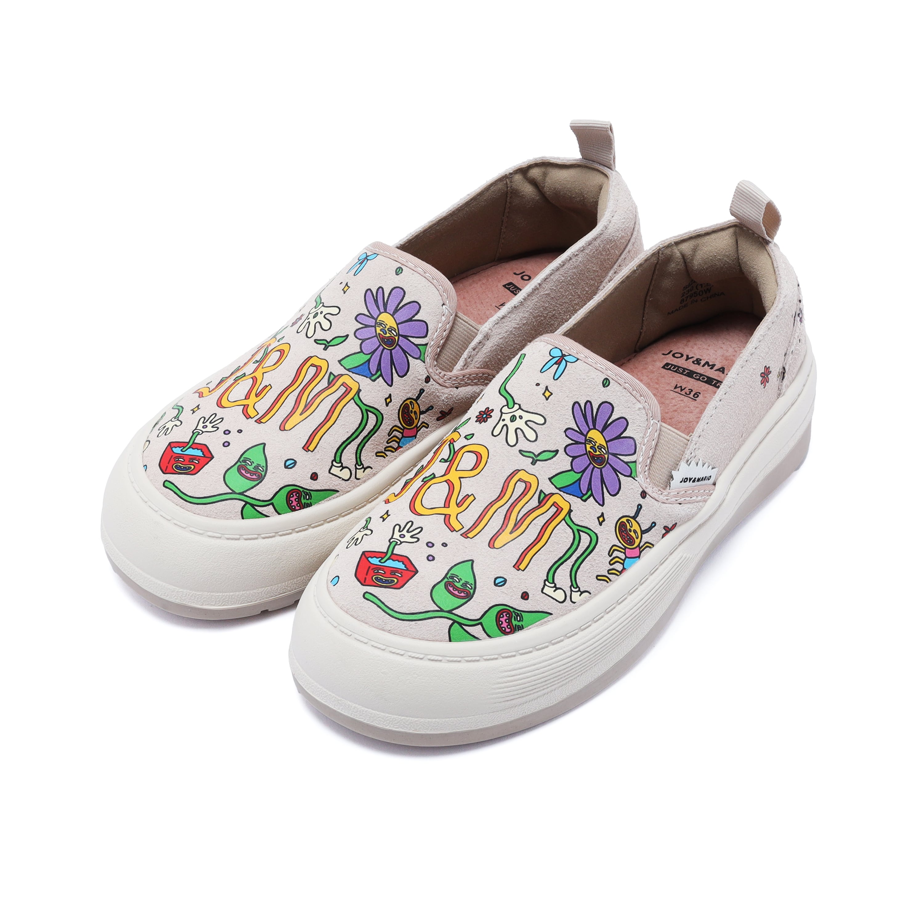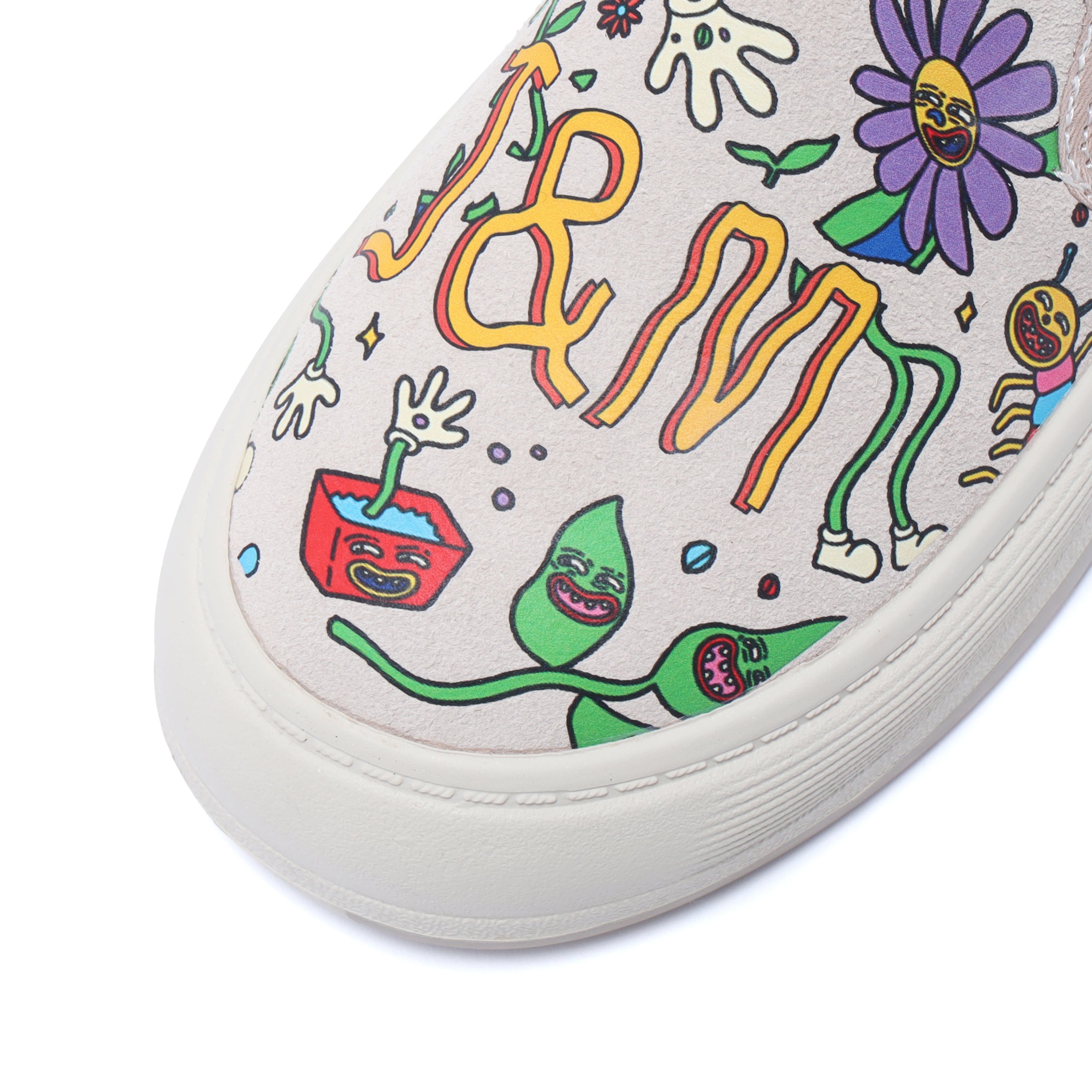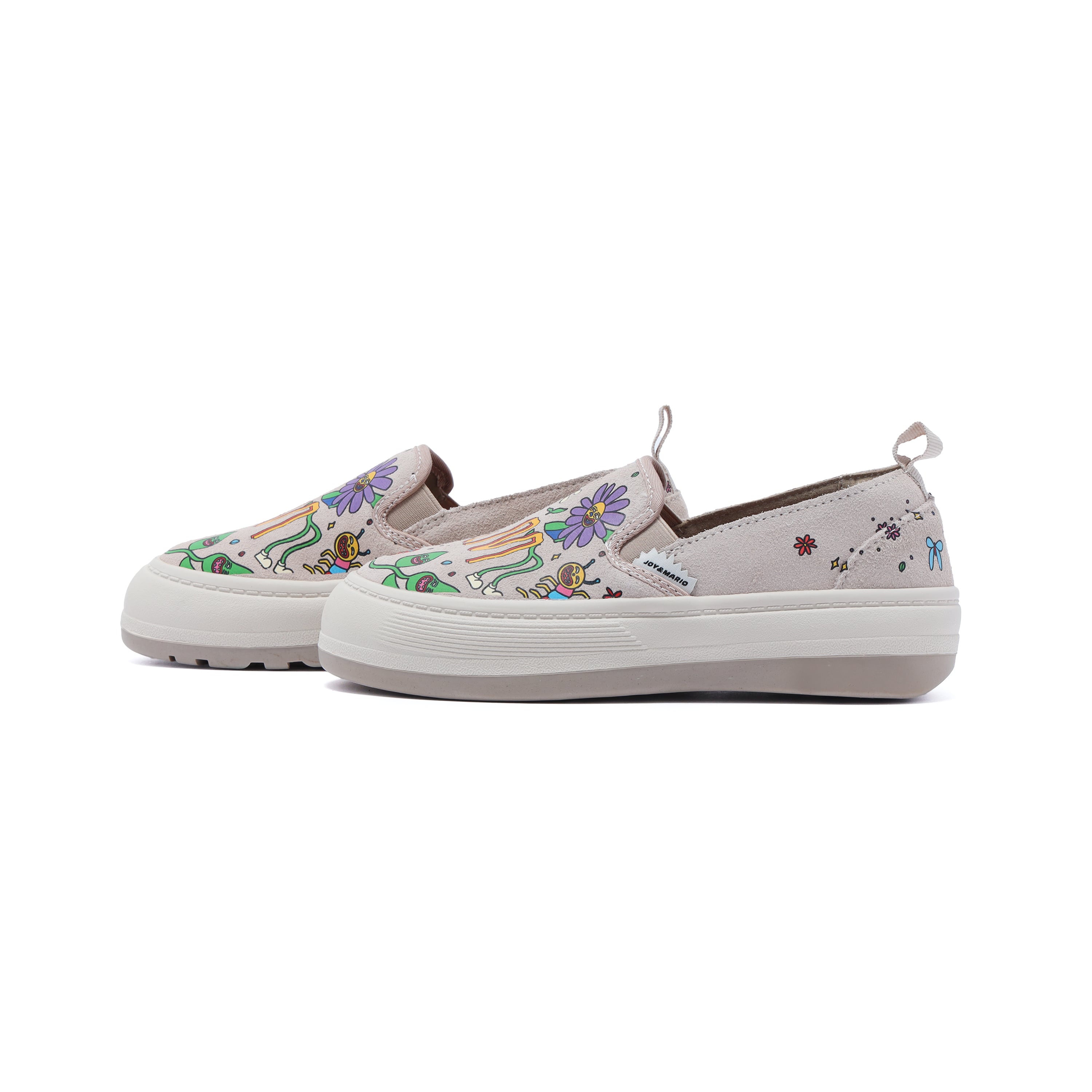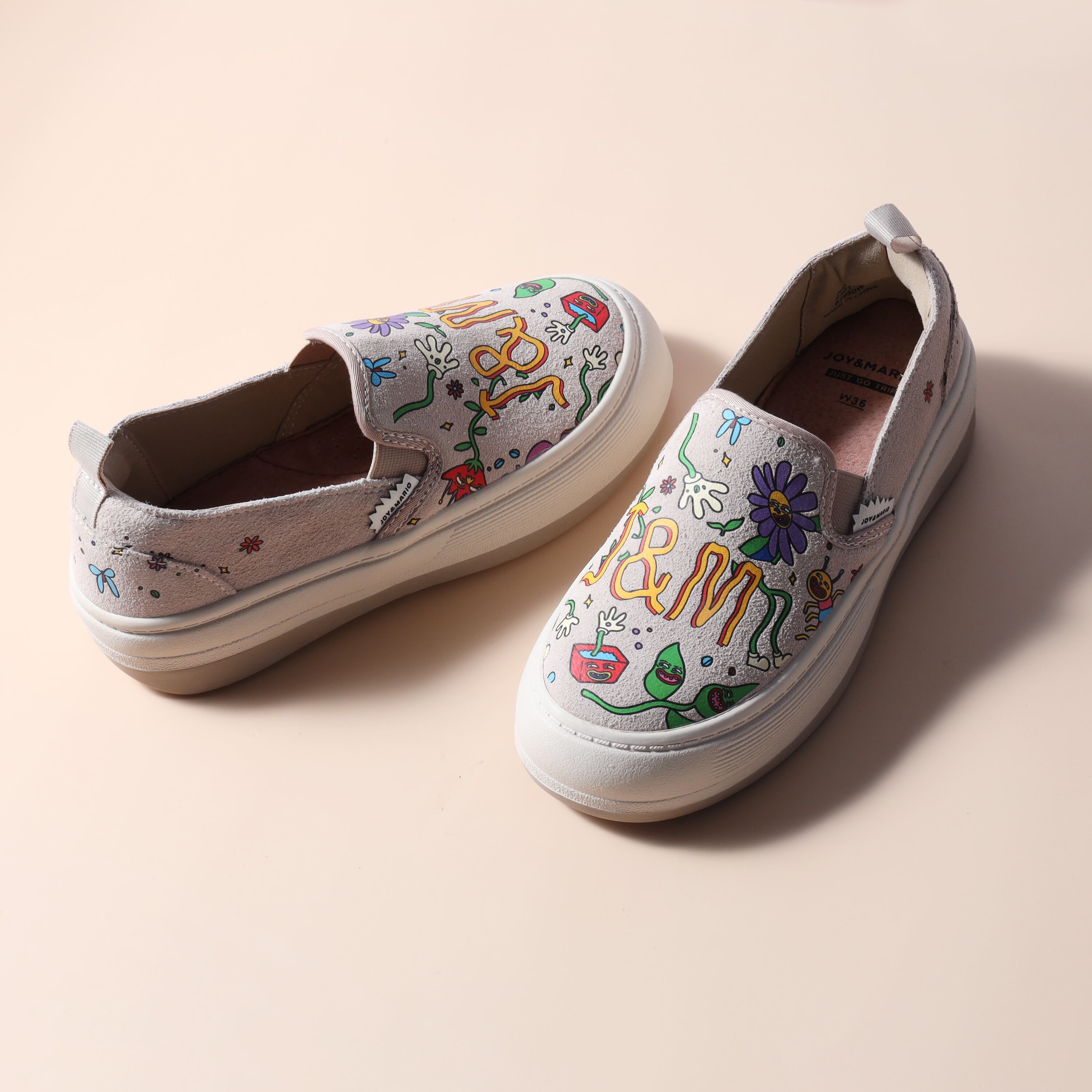 スエードにJoy&Marioらしい落書き風デザインが施された本商品は、シンプルながらも個性的な印象を与え、どんなカジュアルスタイルにもさりげなく華を添えます。グレージュカラーが秋の装いの