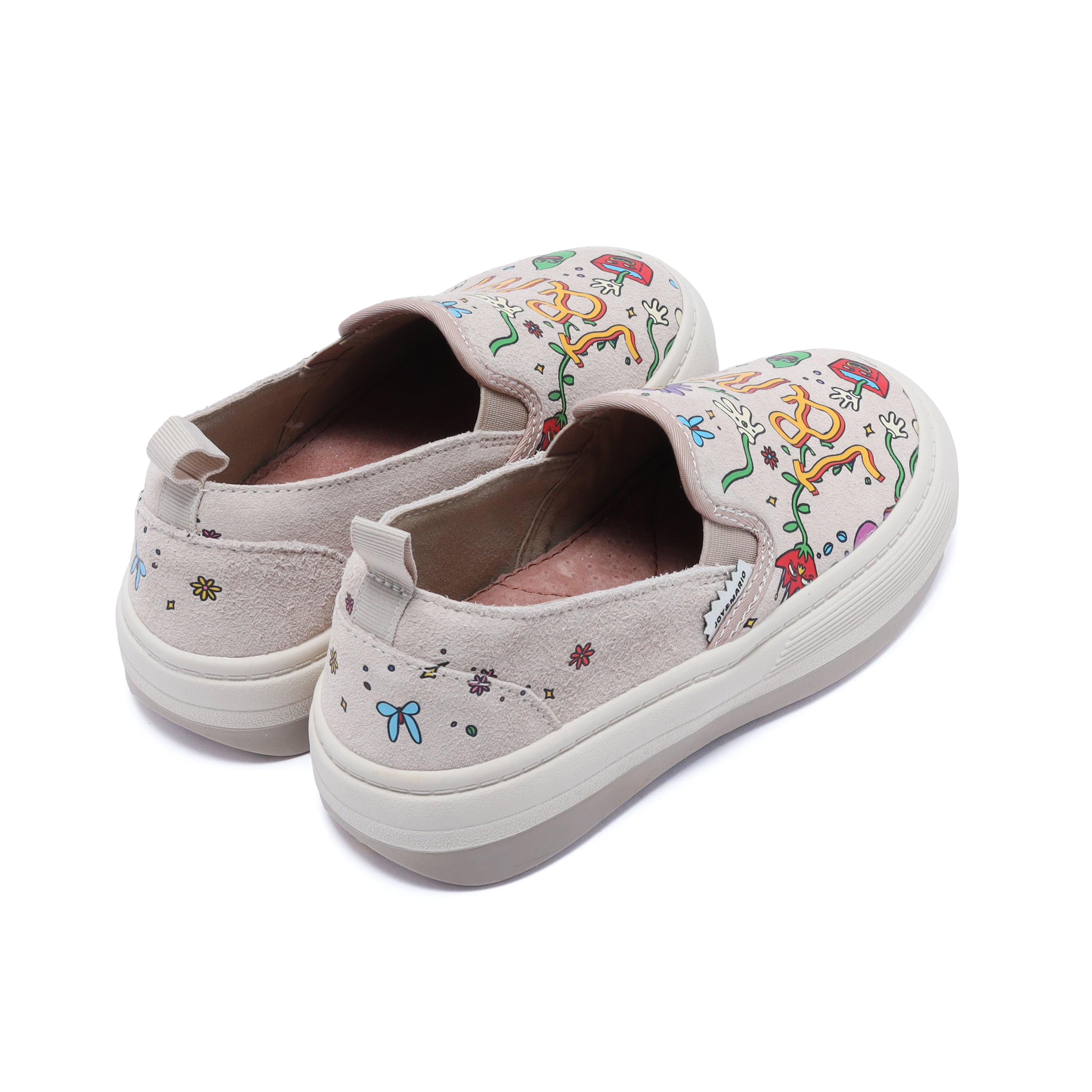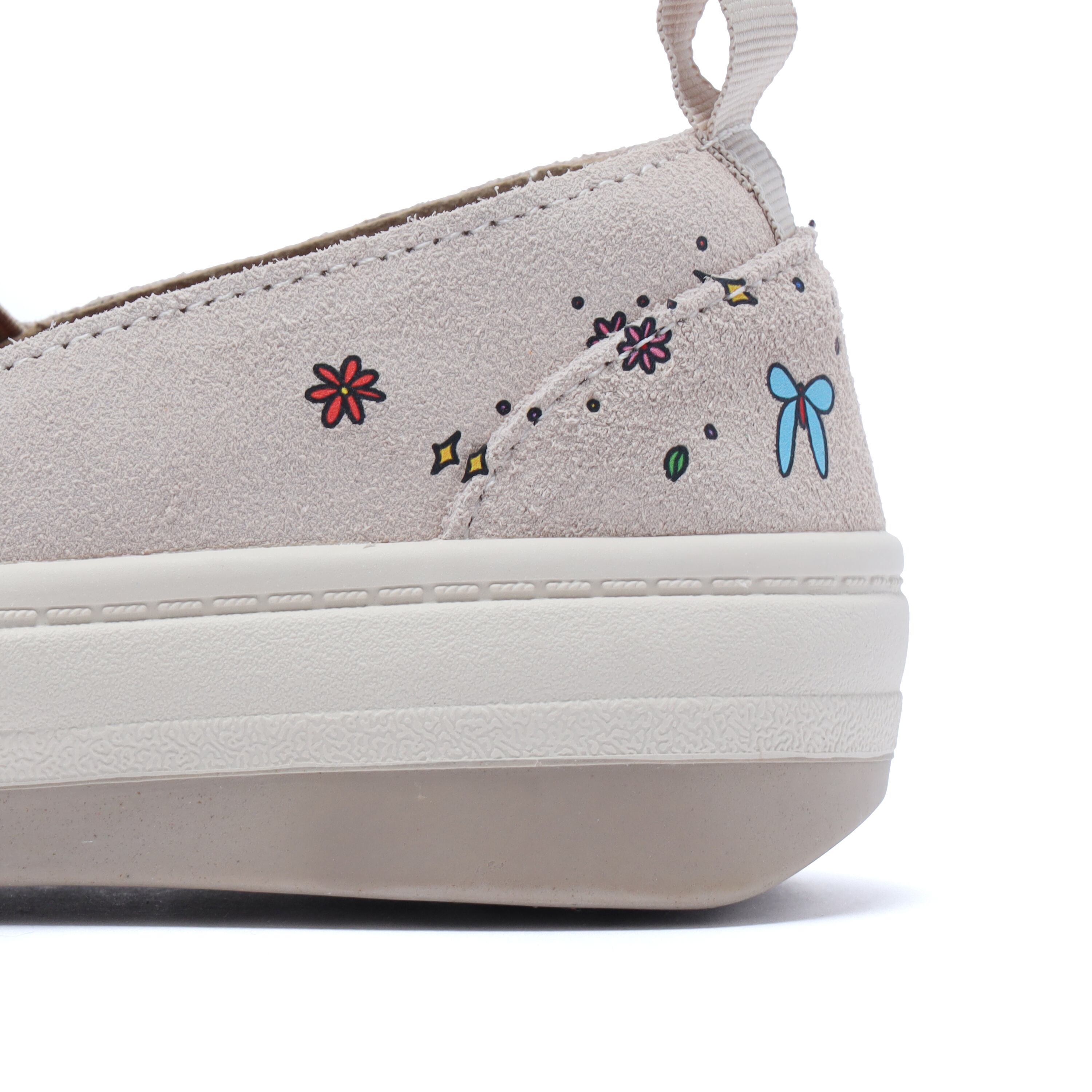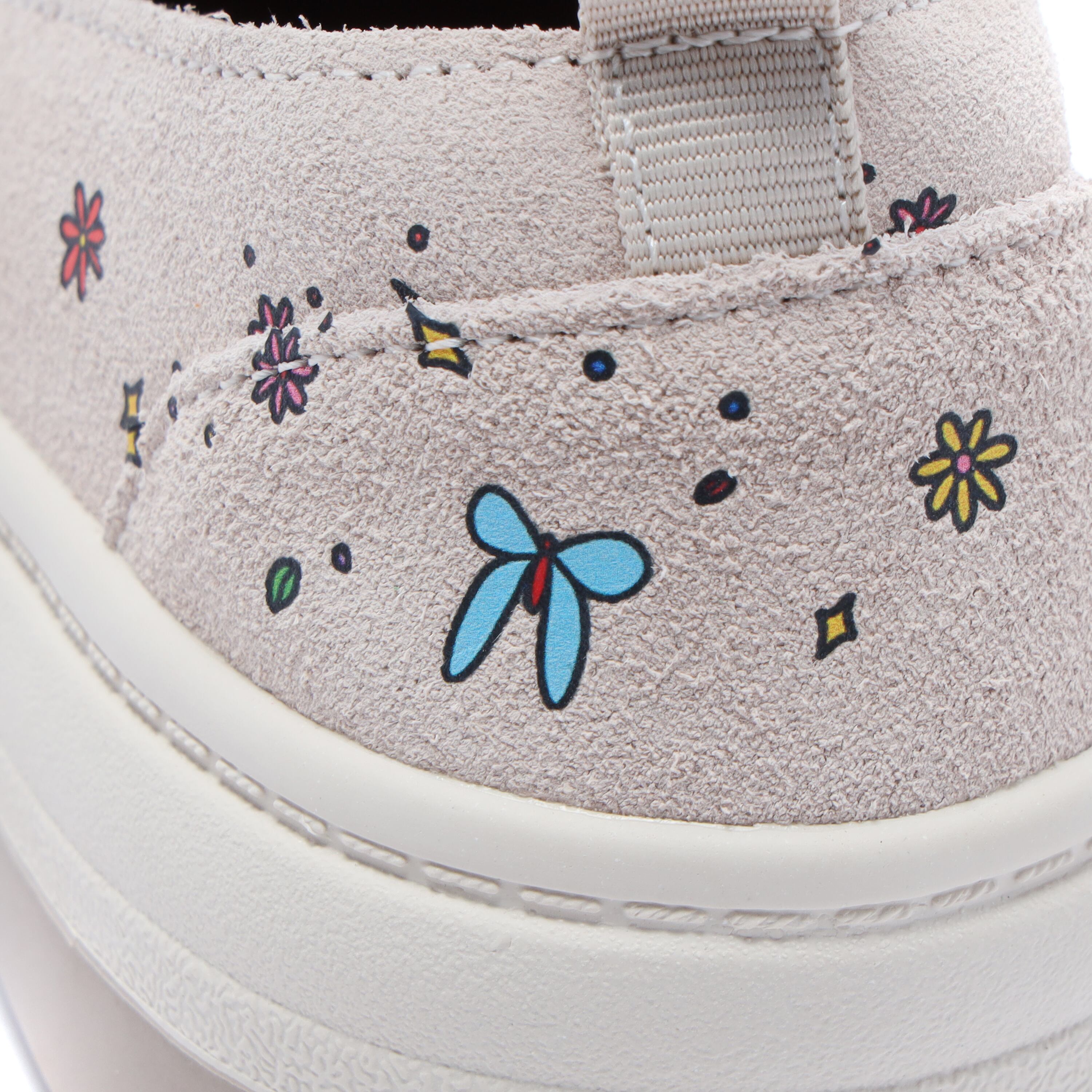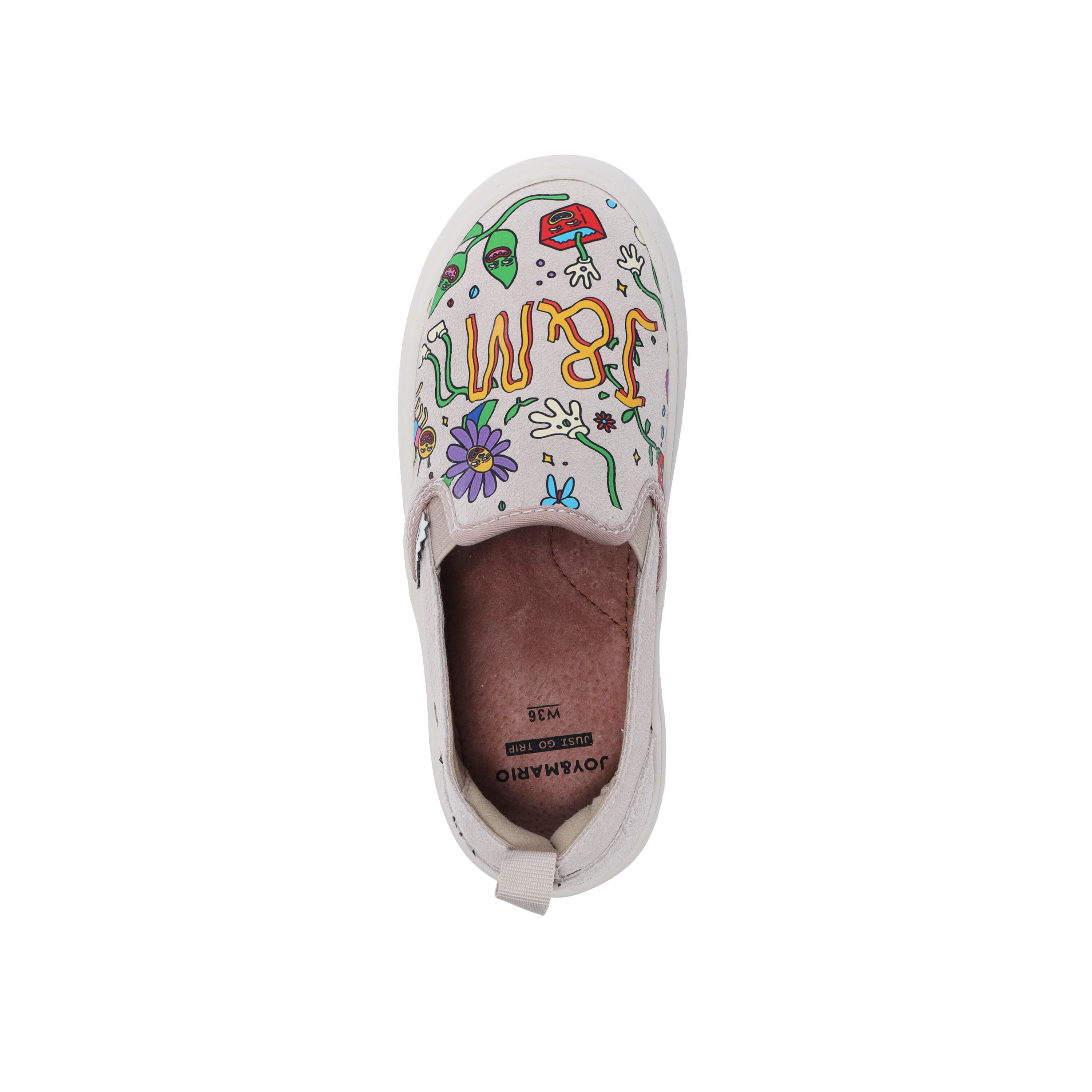 スエードにJoy&Marioらしい落書き風デザインが施された本商品は、シンプルながらも個性的な印象を与え、どんなカジュアルスタイルにもさりげなく華を添えます。グレージュカラーが秋の装いの