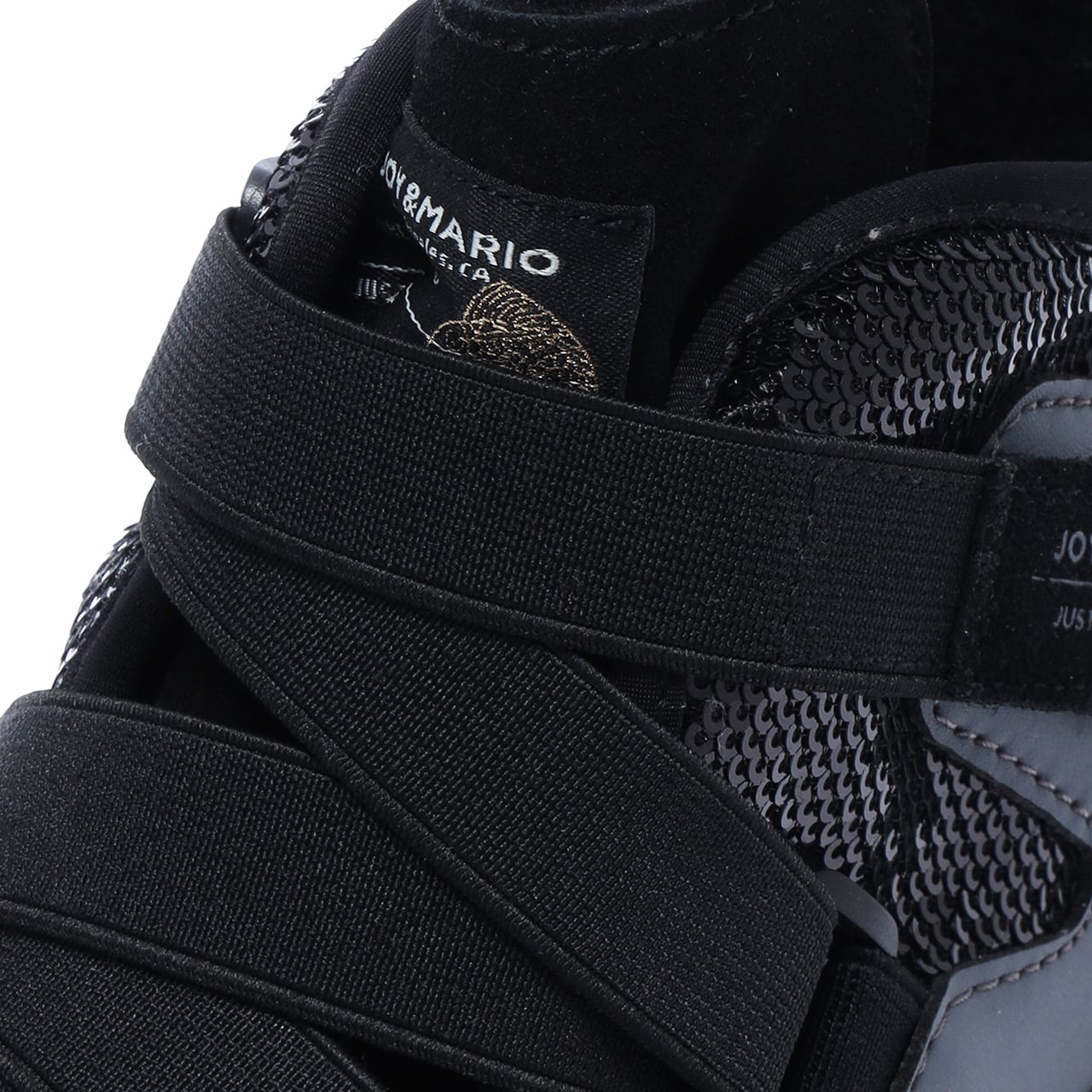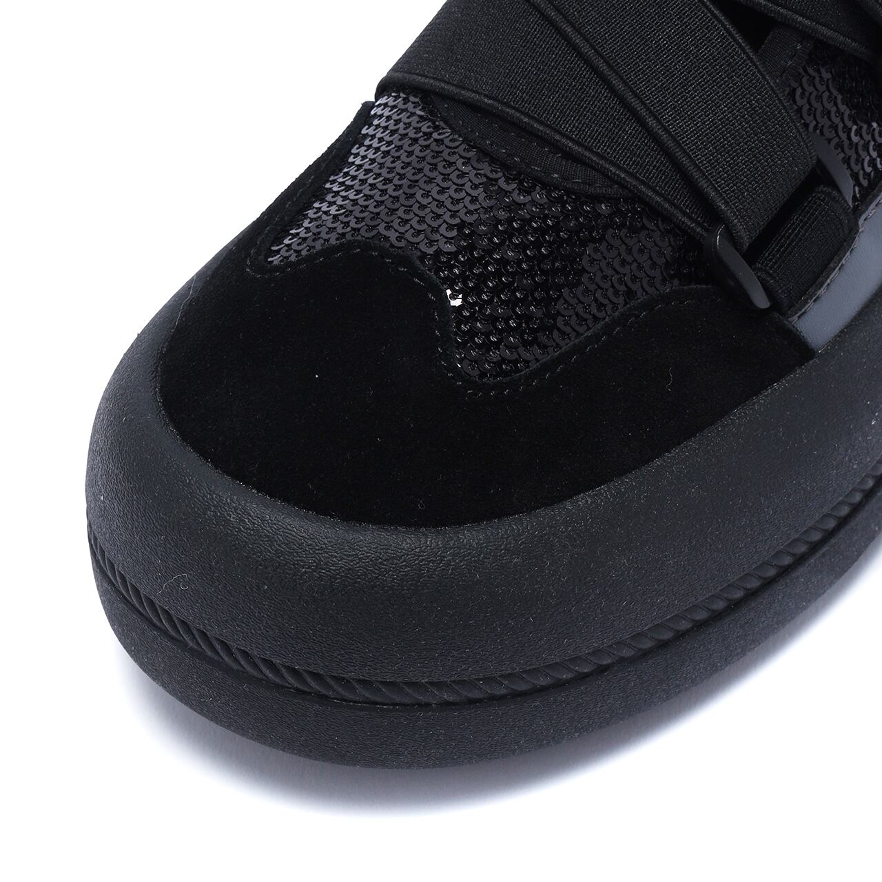 スパンコールとレザーを使用したこのムートンブーツは、冬のスタイルに華やかさを添える魅力的なアイテムです