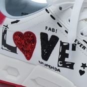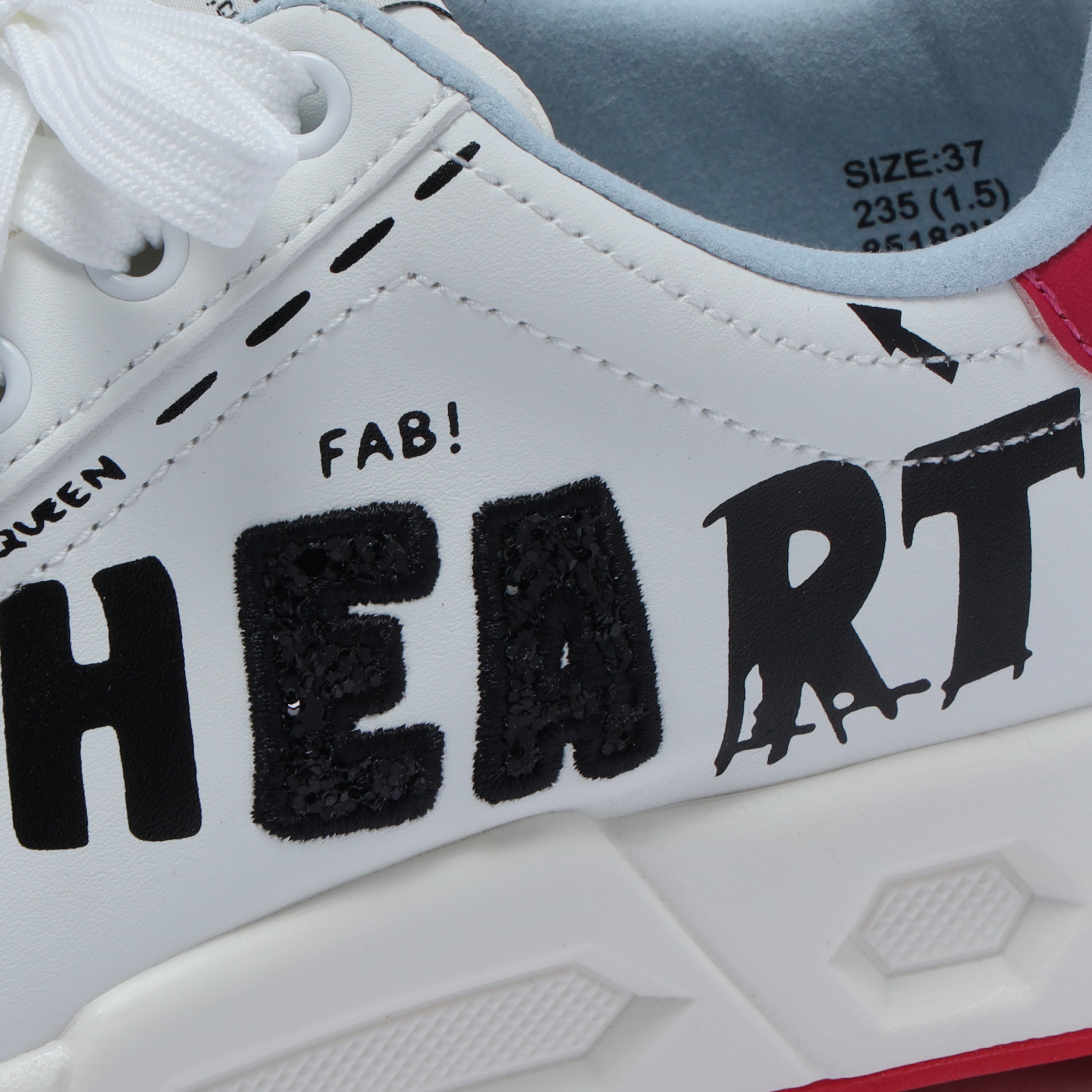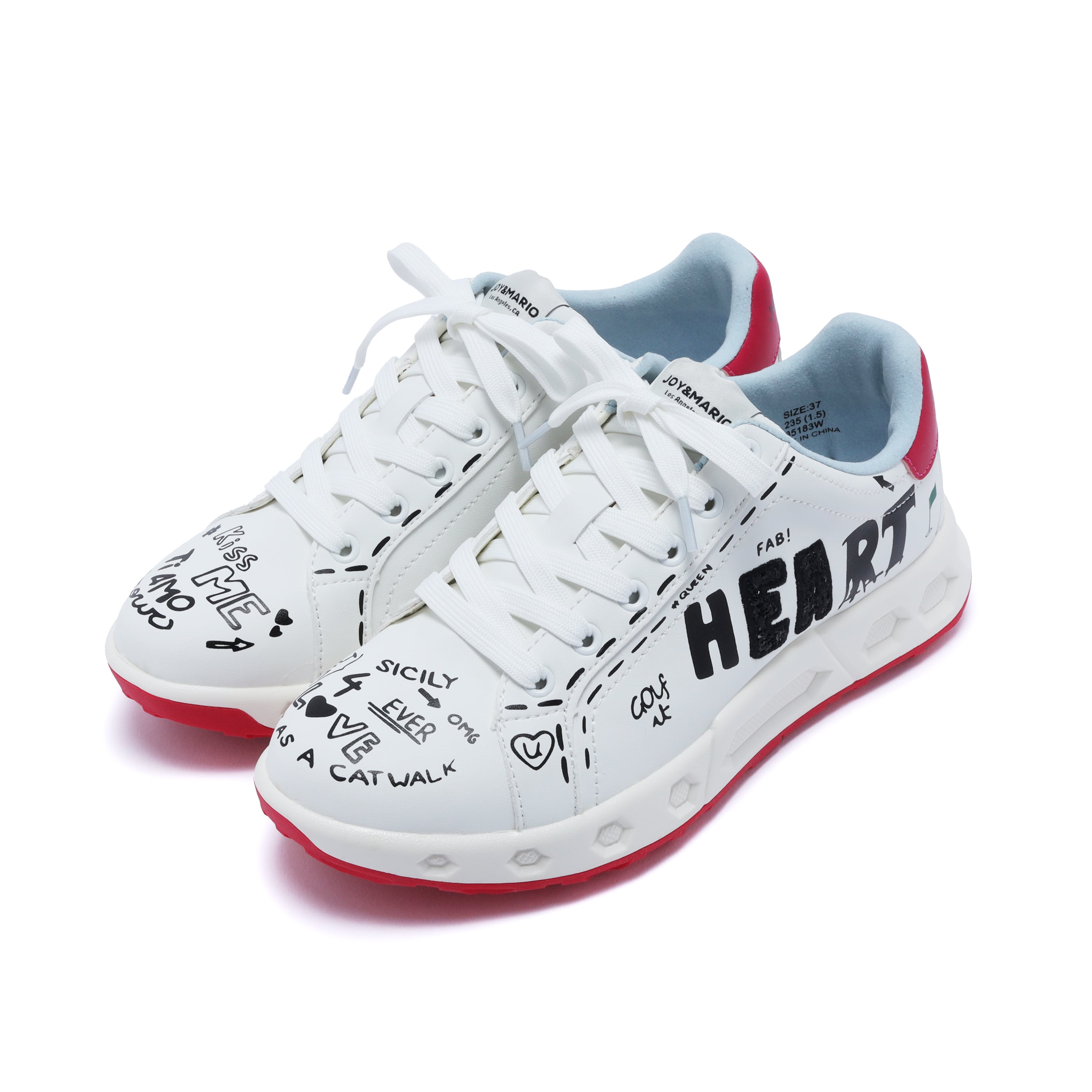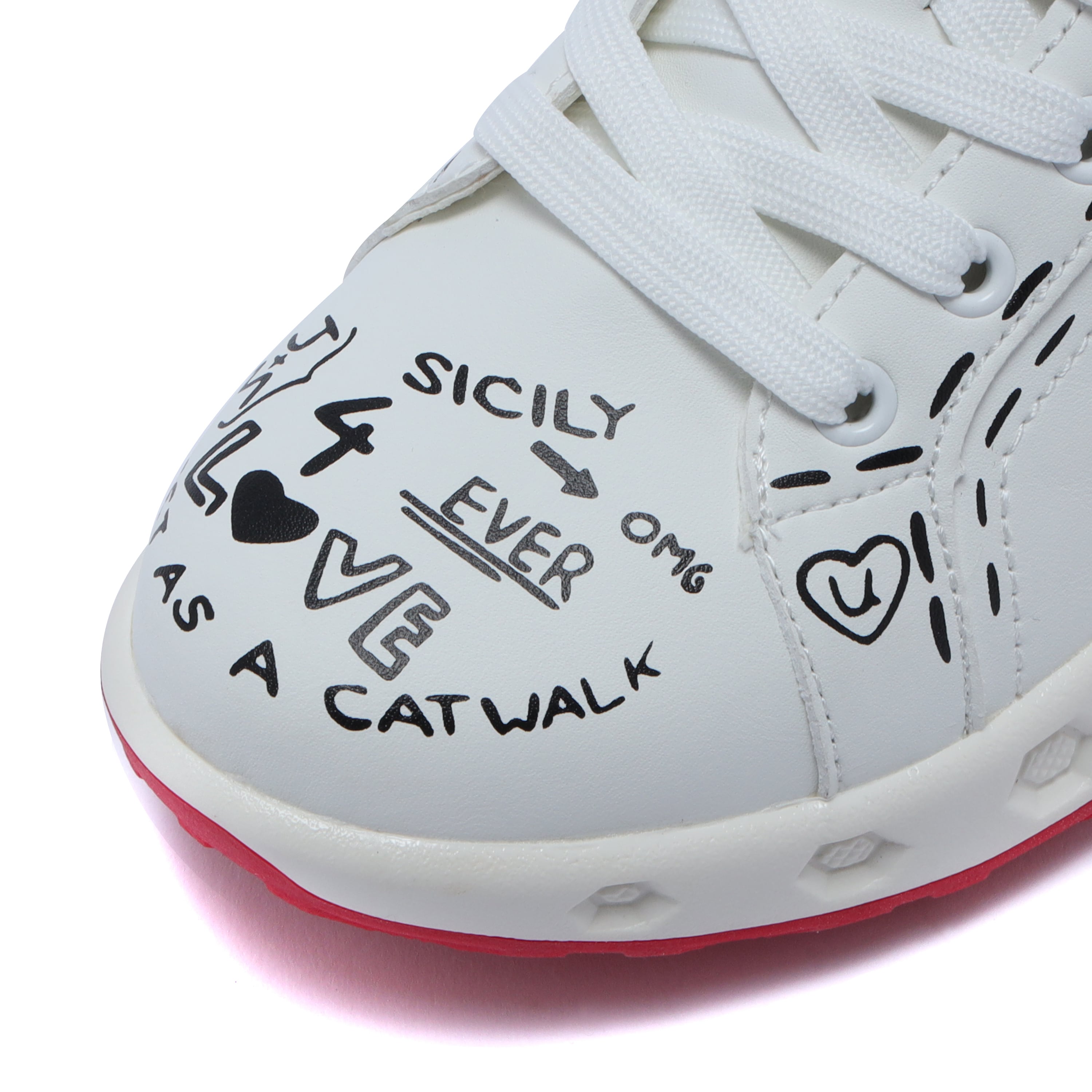 アシンメトリーな落書き調デザインが、コースでも視線を集める一足。左右非対称のグラフィックが足元に遊び心をプラスし、今までにないデザイン性を実現しました。