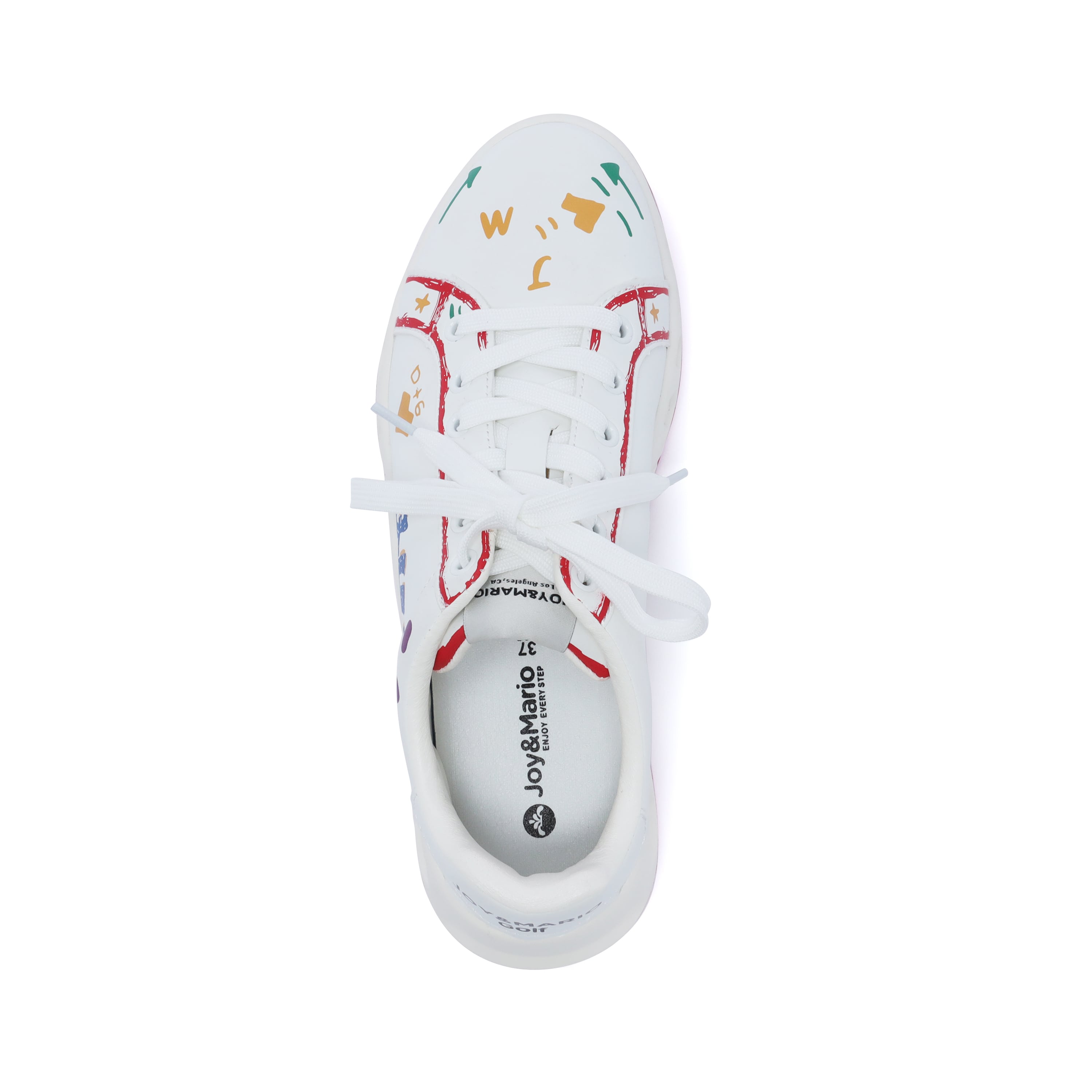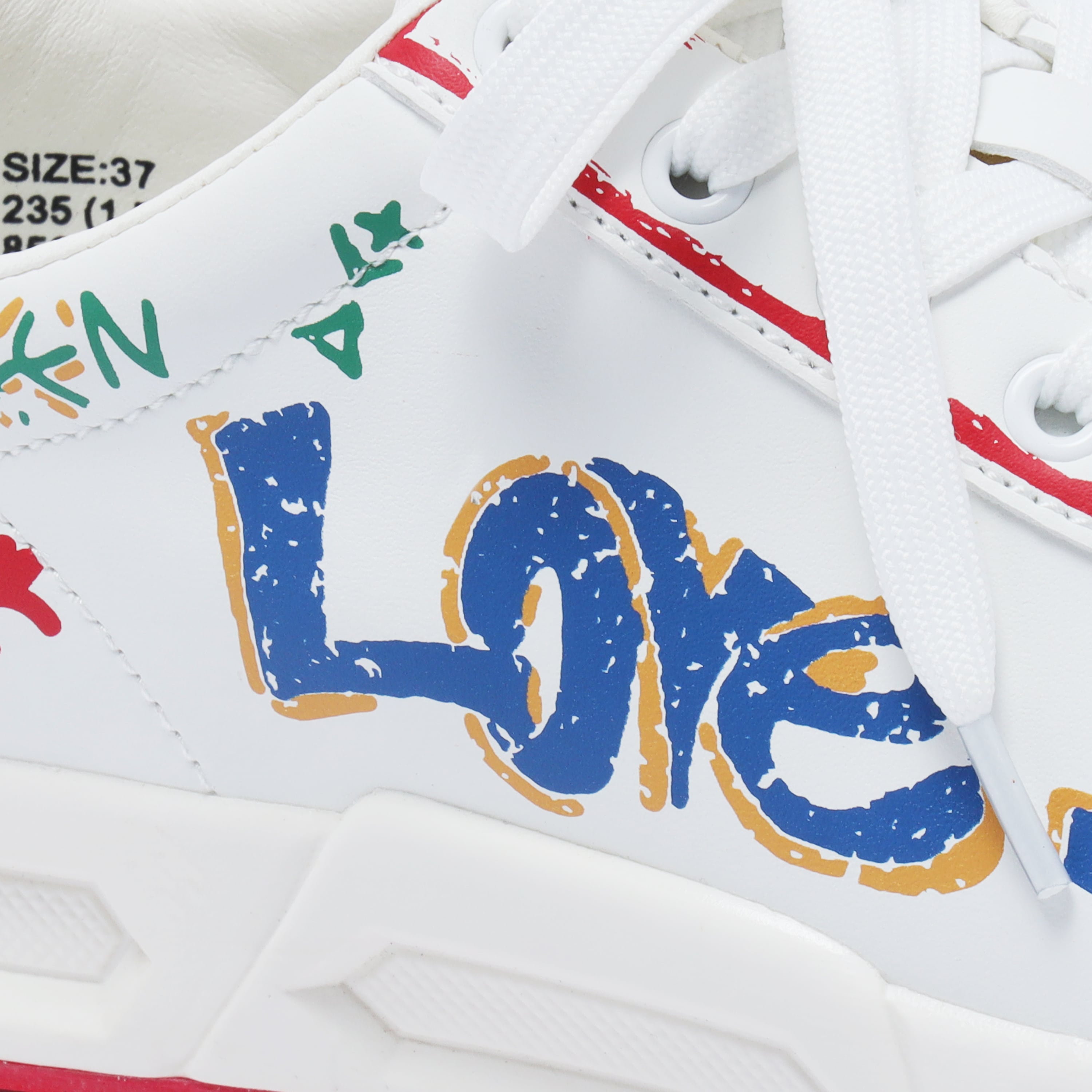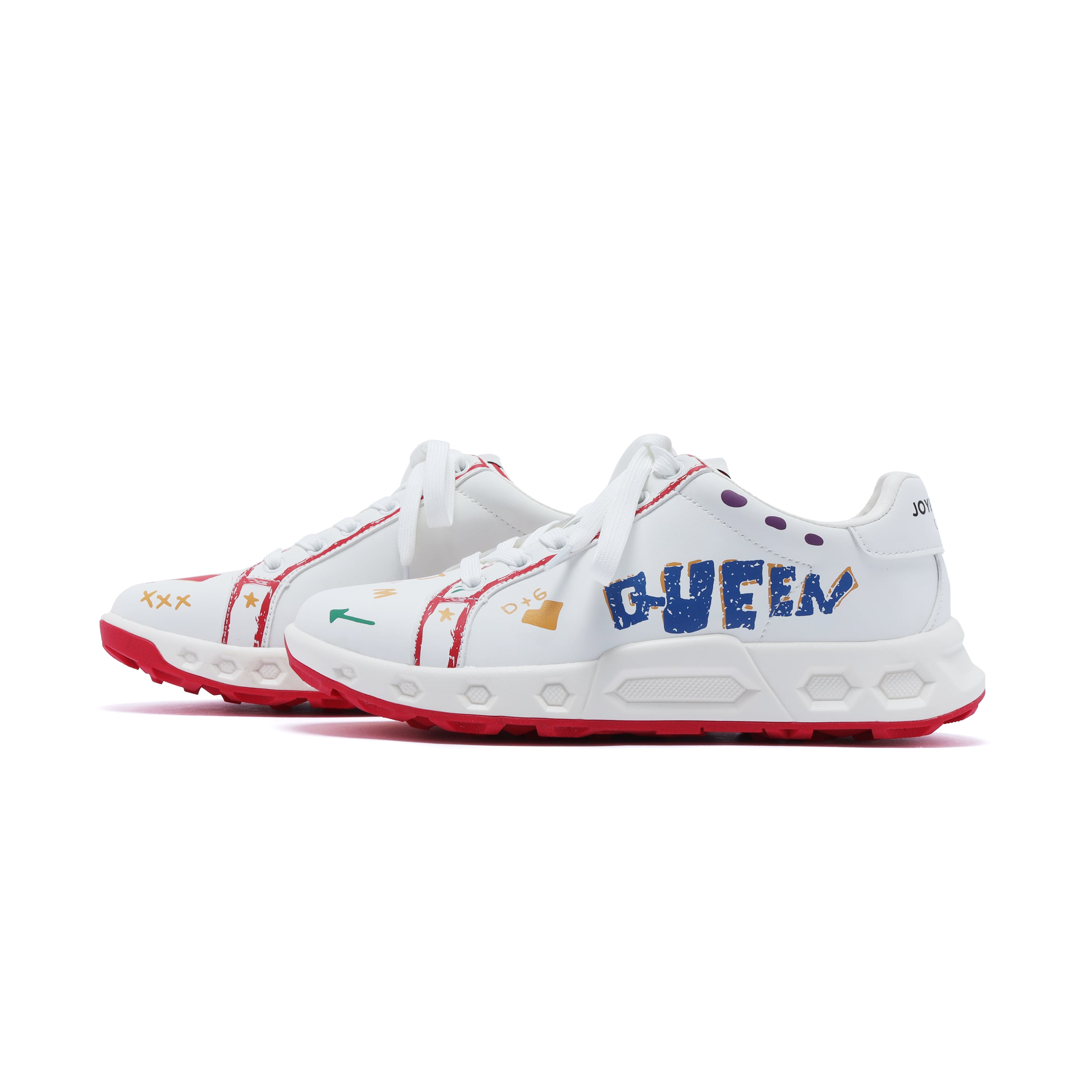 アシンメトリーな落書き調デザインが、コースでも視線を集める一足。左右非対称のグラフィックが足元に遊び心をプラスし、今までにないデザイン性を実現しました。