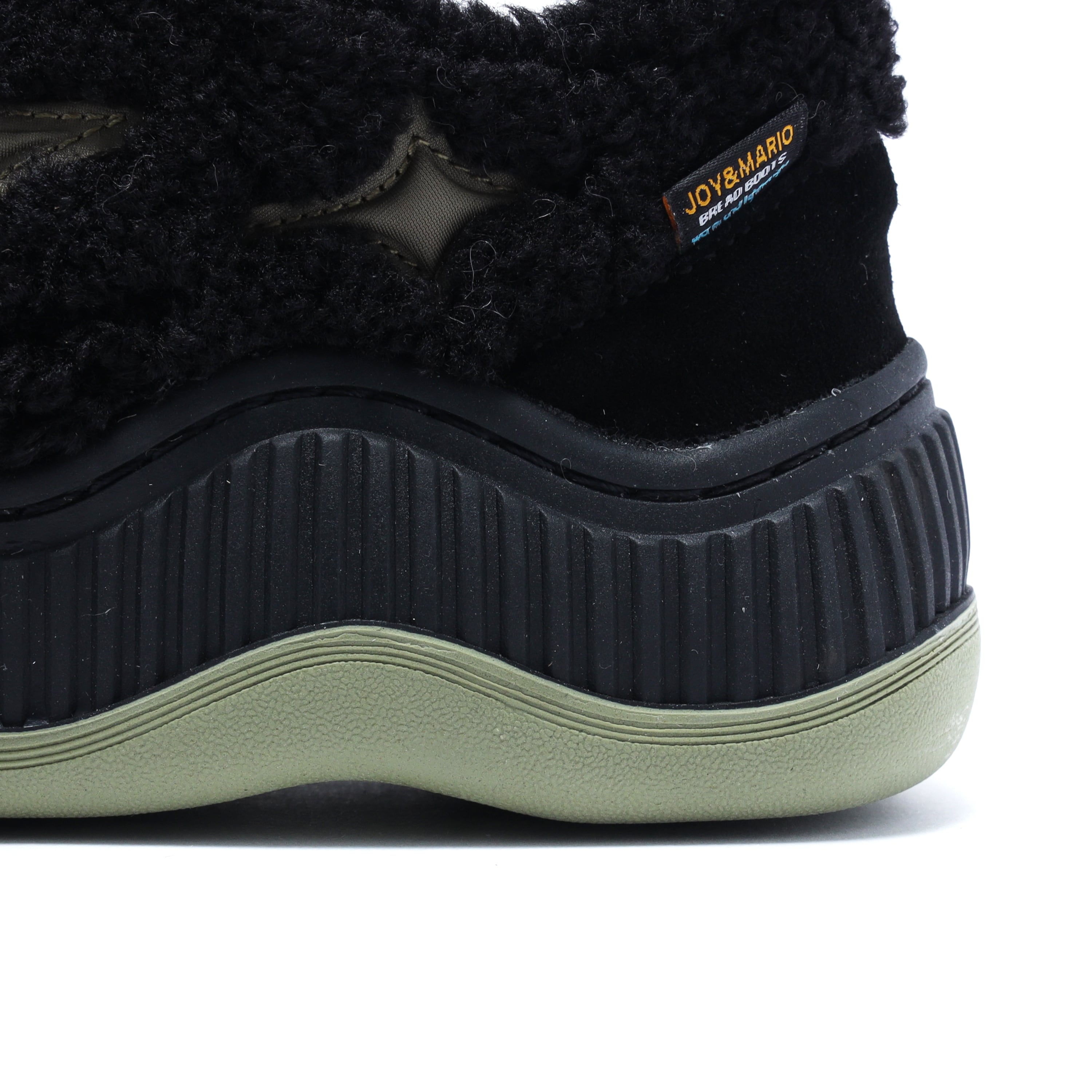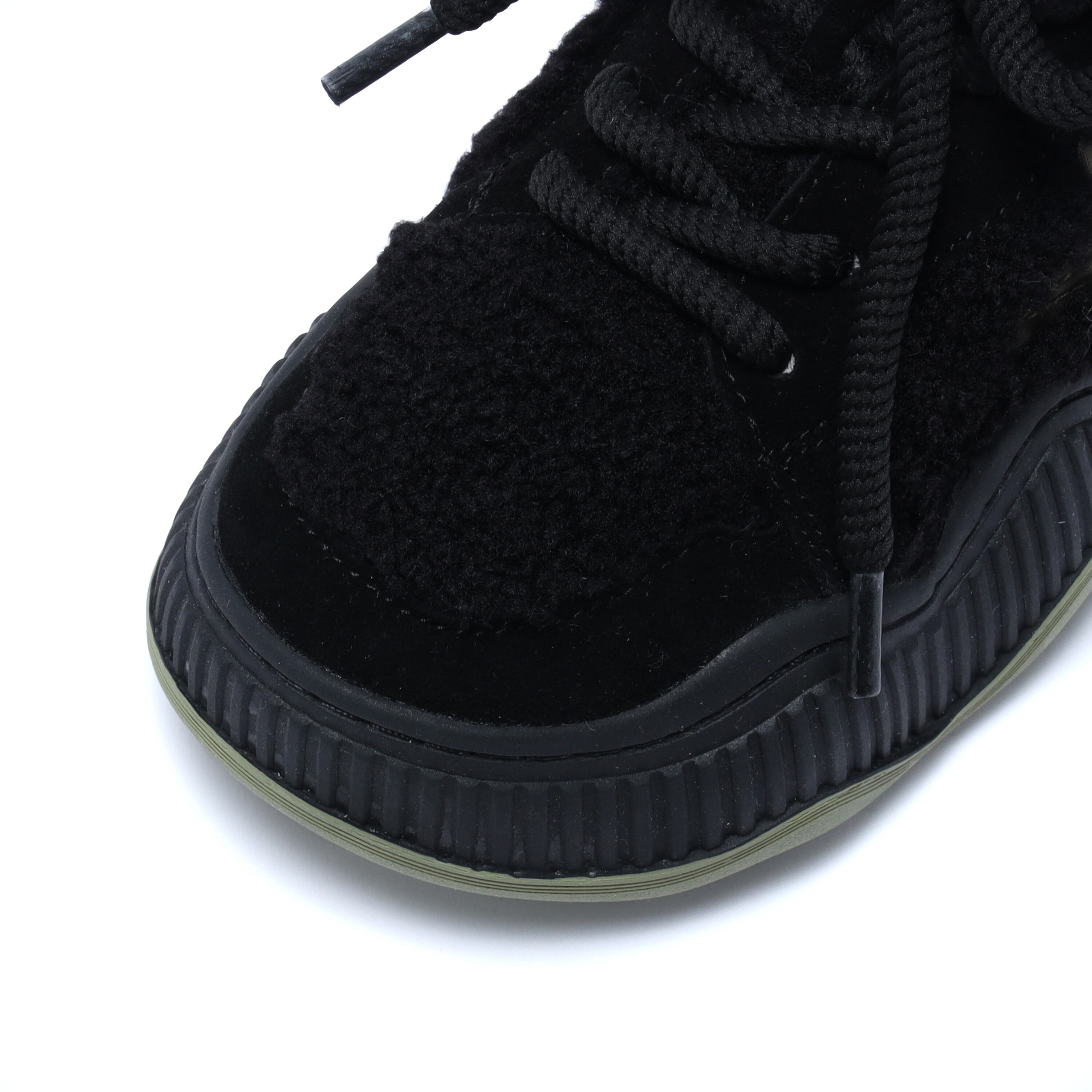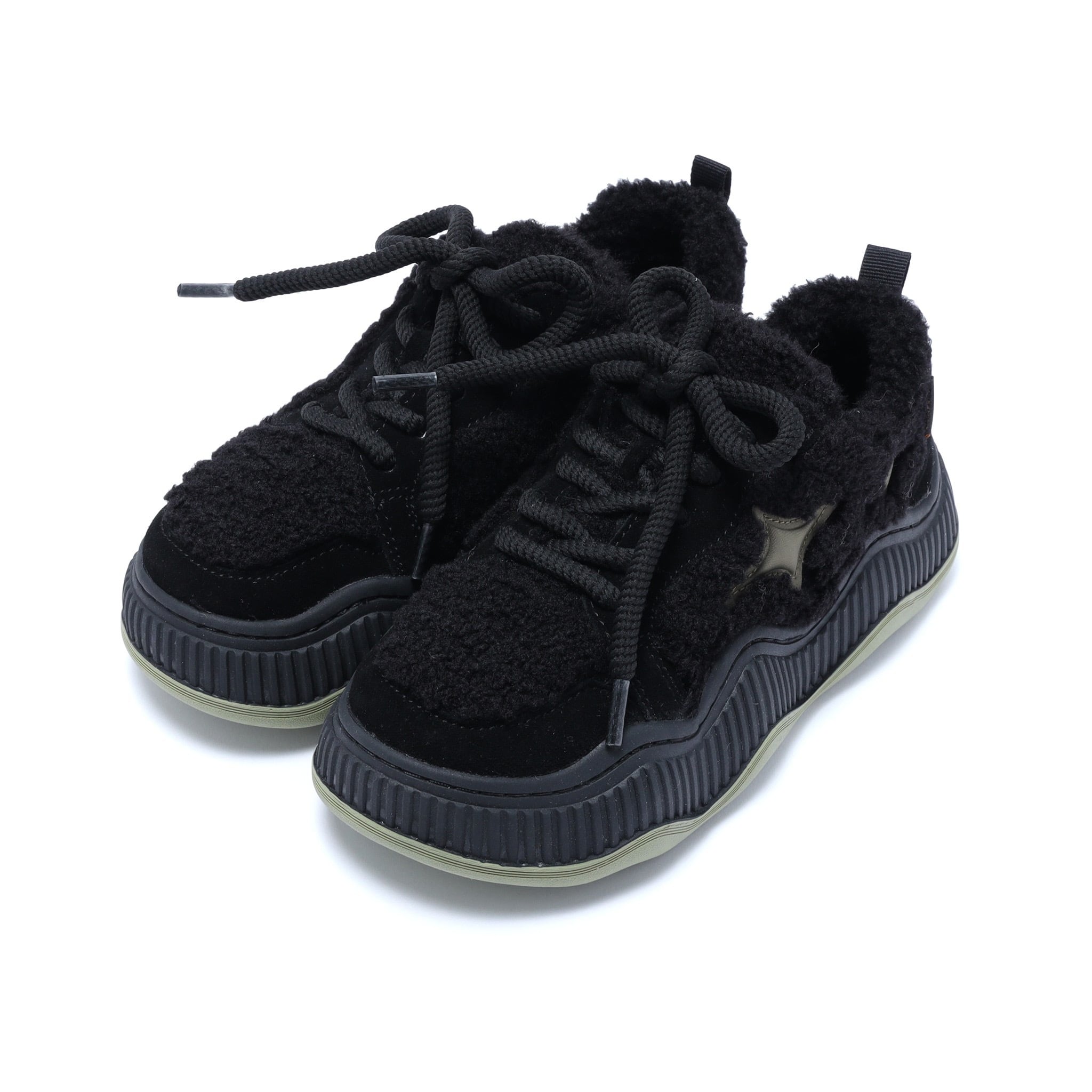 羊ムートンとスエードを使用したこのスニーカーは、可愛らしいデザインとともに、