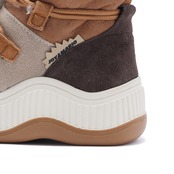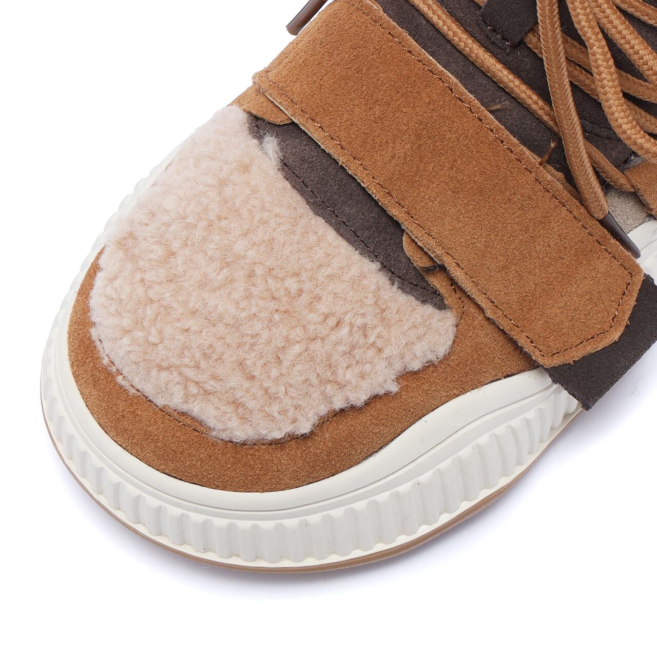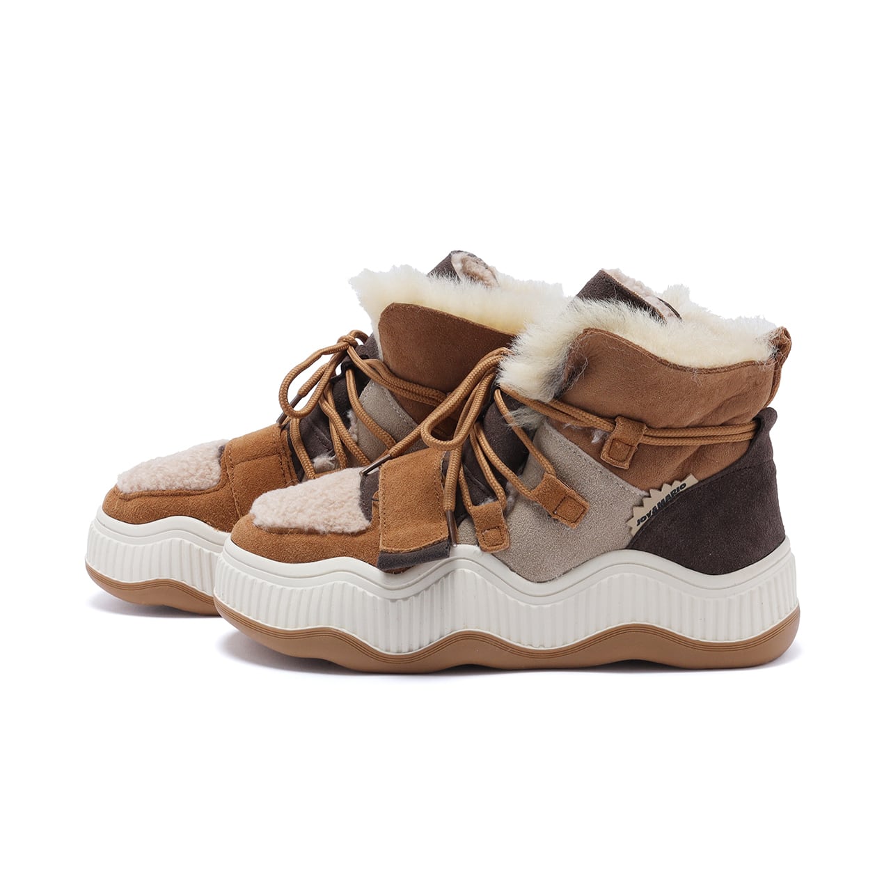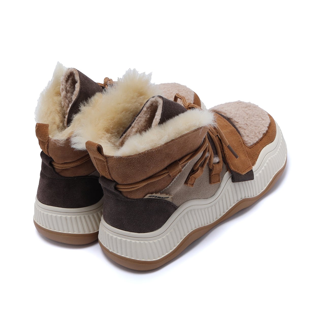 アッパー部分にスエードとムートンを使用したこのもこもこムートンブーツは、寒い冬の日にもおしゃれを演出する頼もしいアイテムです。柔らかなムートンが足を包み込み、快適な暖かさを提供。厚底デザインでスタイルアップ効果もあり、コーディネートの幅を広げてくれます。
